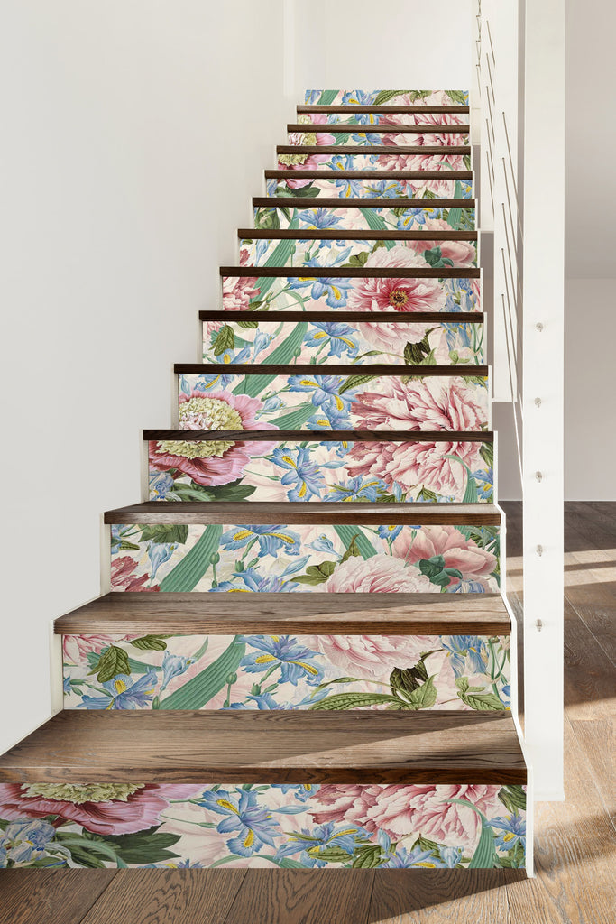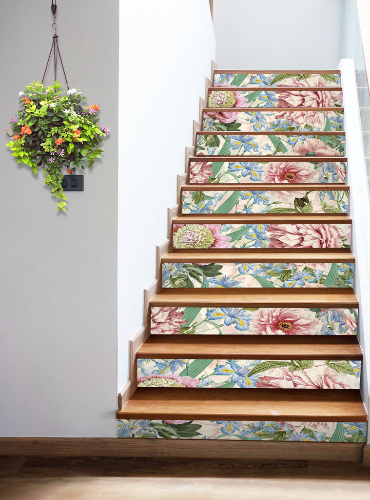 3D Light Pink Blue Flowers 10443 Uta Naumann Stair Risers Sinsin