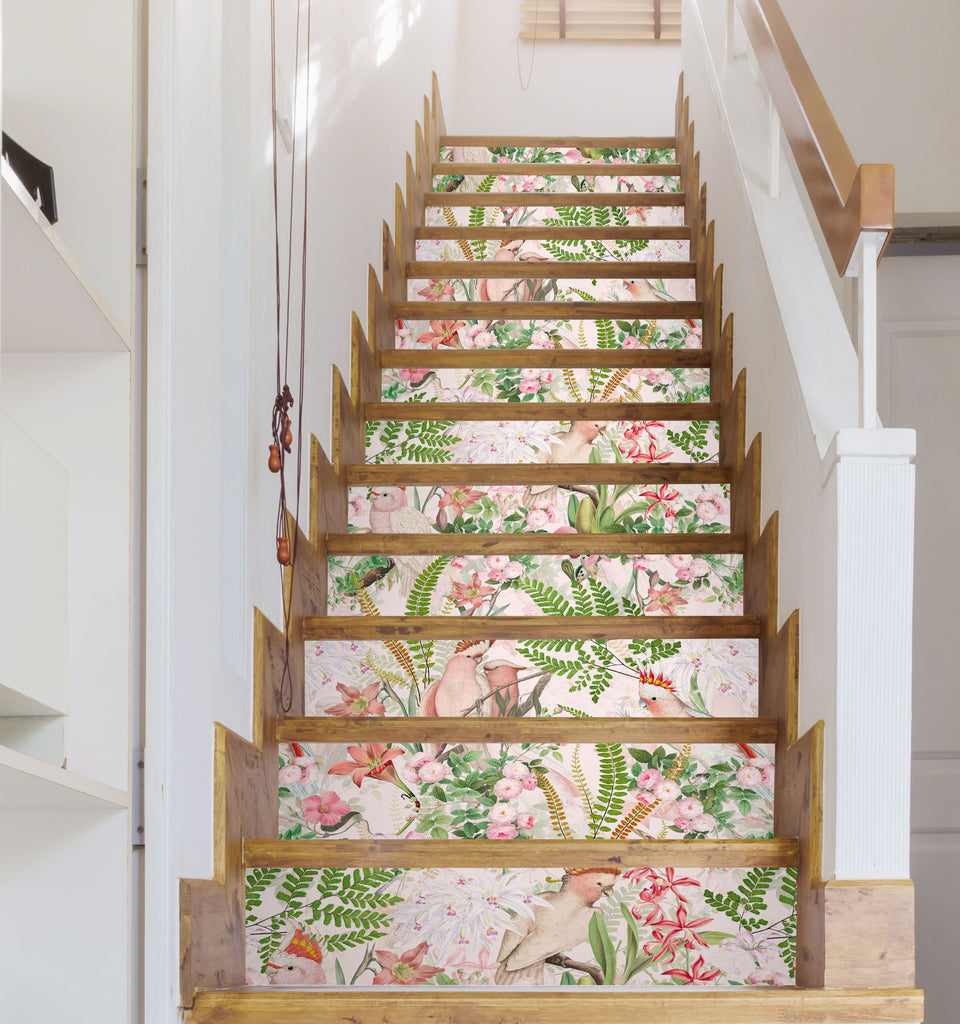 3D Light Pink Flowers Bird Leaves 103227 Uta Naumann Stair Risers Sinsin