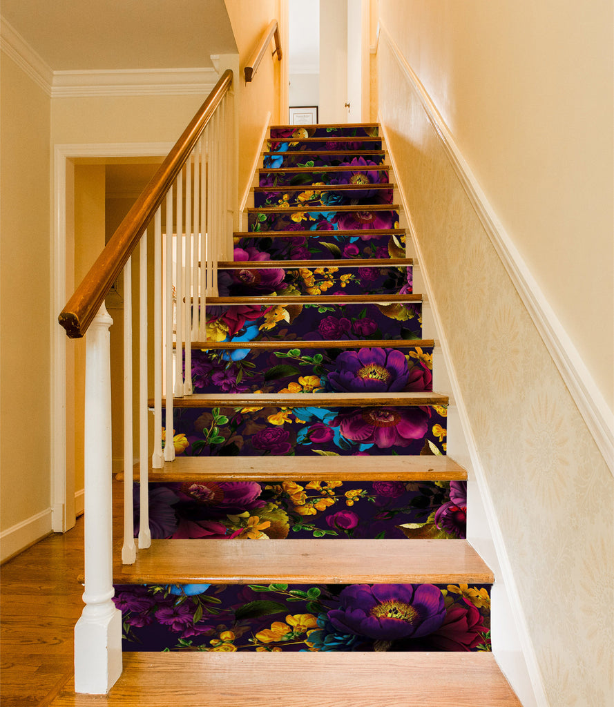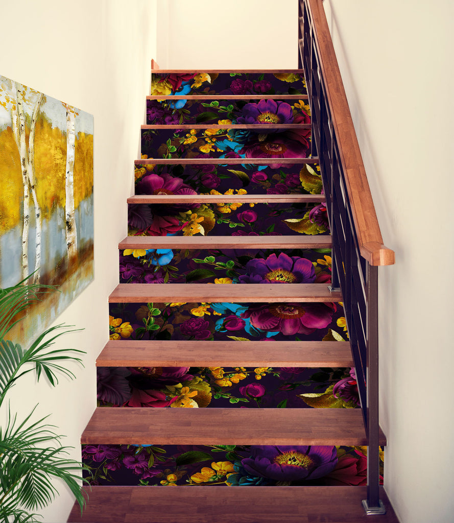 3D Purple Blue Yellow Flowers 10432 Uta Naumann Stair Risers Sinsin