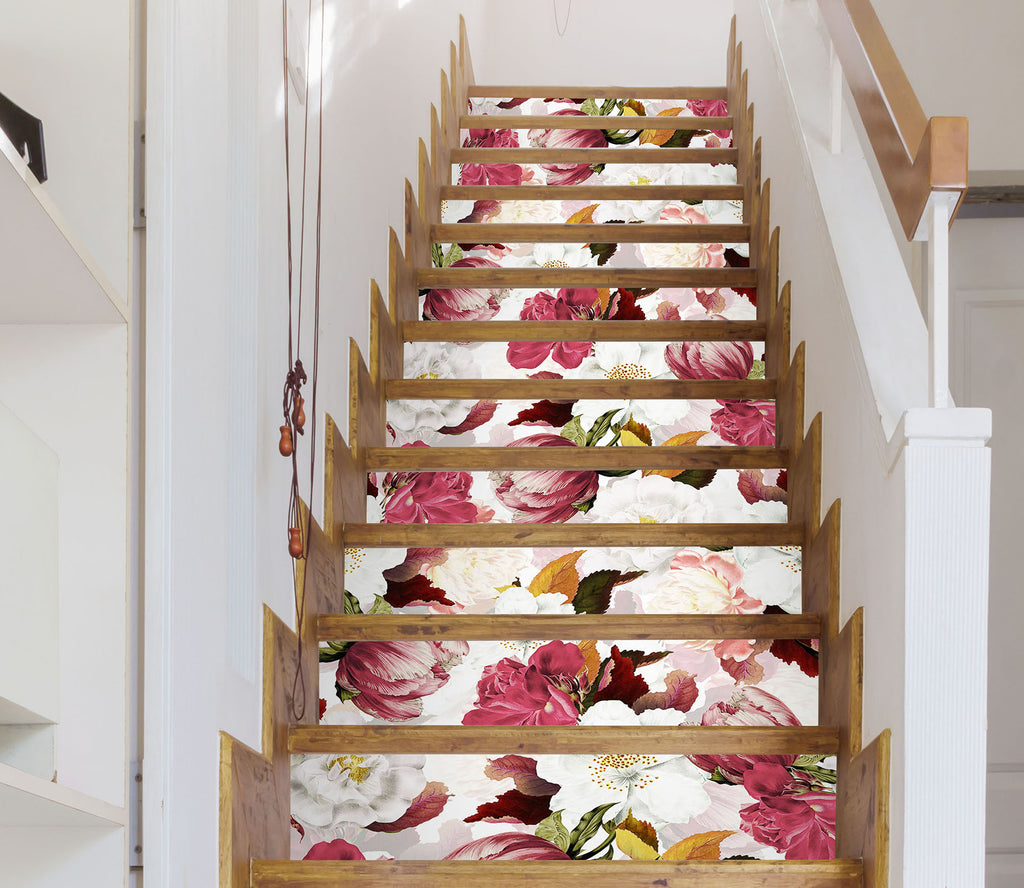 3D Red White Flower 10434 Uta Naumann Stair Risers Sinsin