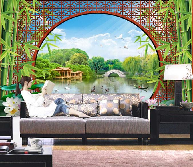 3D Beautiful Scenery Round Window