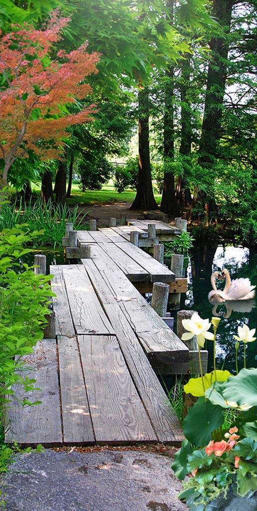 3D Lake Wood Bridge 76 Door Mural