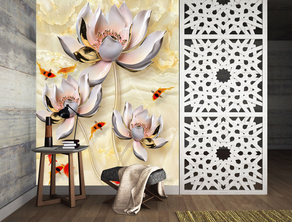 3D Swimming Fish Lotus 1865 Wall Murals Dai