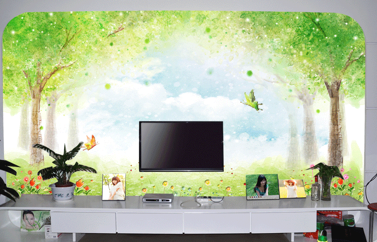 Align panel 2 to panel 1. Simply match the pattern of the mural (with 2cm overlap).No need to cut. Repeat for additional panels. Trim any ceiling and baseboard overage, lt's better to wipe the mural's surface with a wet cloth after the installation. Because it will make more sticky.