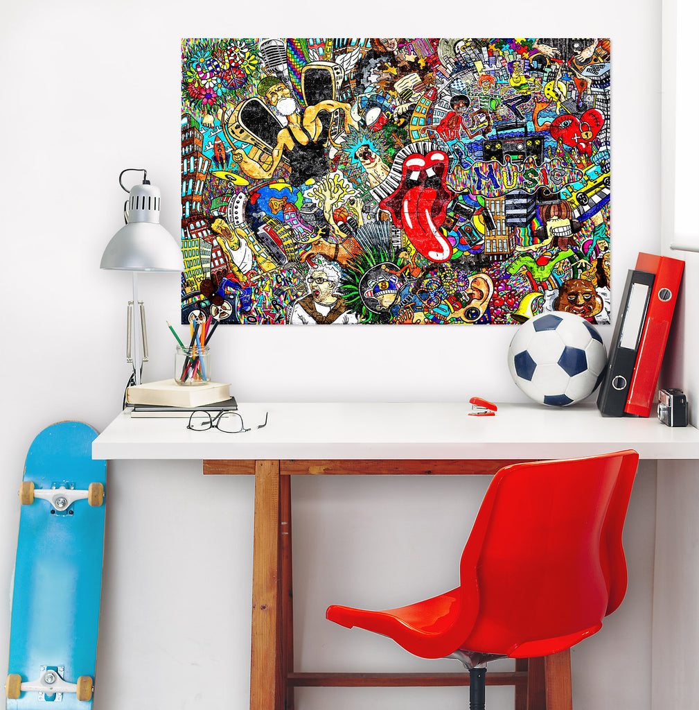 Make sure the wall surface is flat, clean and smooth. A clean and dry wall will help the adhesive from your wall mural to keep its stickiness. Put all panels on the ground, check the order. Measure and write down the dimensions of each panel. Mark vertical guidelines according to the panel's dimensions. Leave 2-3cm overlap between panels.