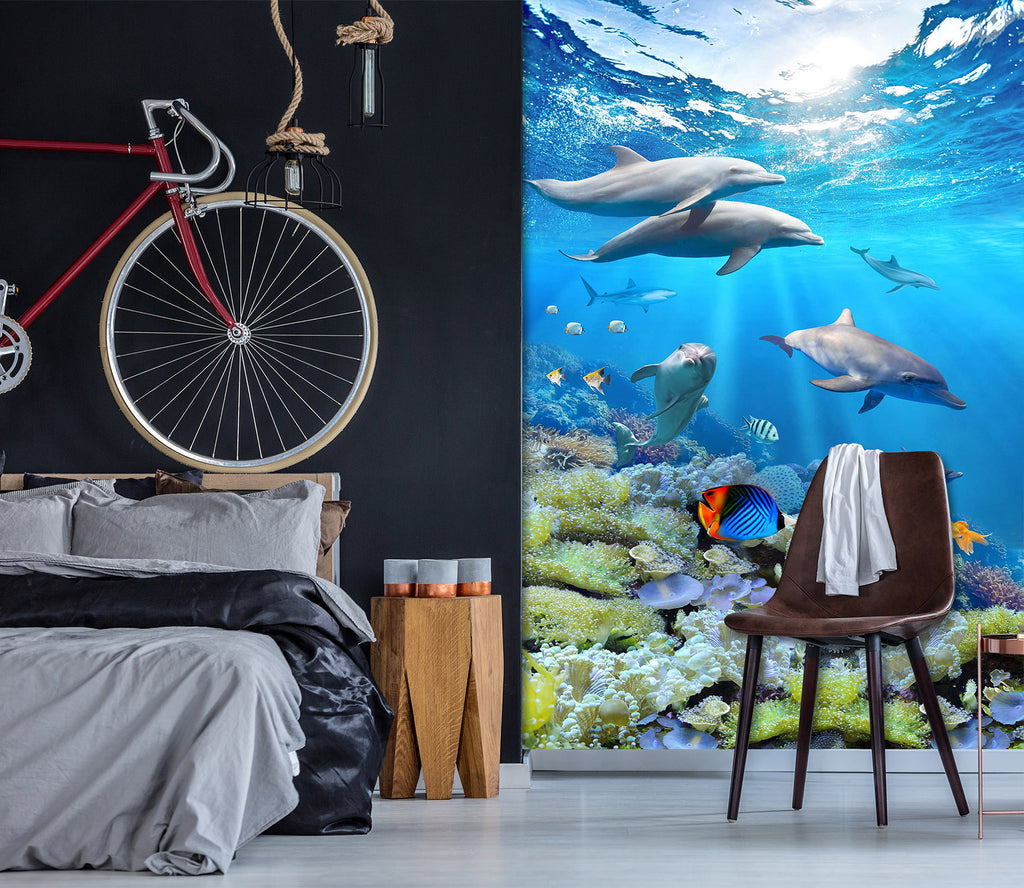 3D Deep Sea Dolphin 1967 Wall Murals