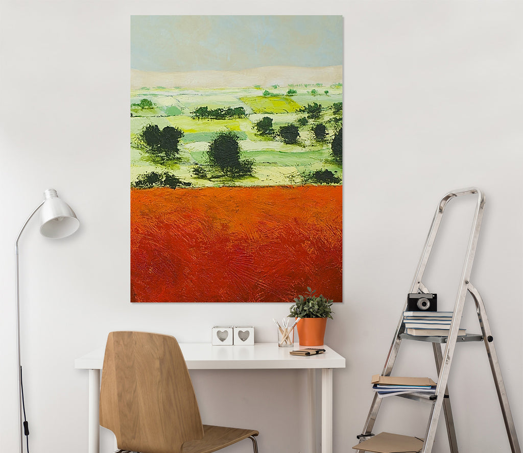 Make sure the wall surface is flat, clean and smooth. A clean and dry wall will help the adhesive from your wall mural to keep its stickiness. Put all panels on the ground, check the order. Measure and write down the dimensions of each panel. Mark vertical guidelines according to the panel's dimensions. Leave 2-3cm overlap between panels.