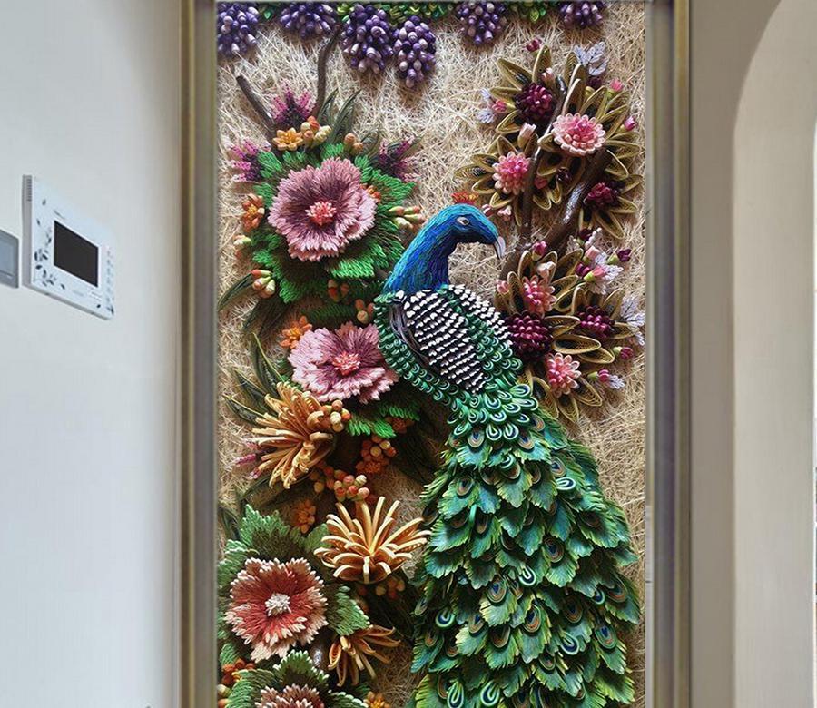 3D Peacock Flower 648 Wall Murals