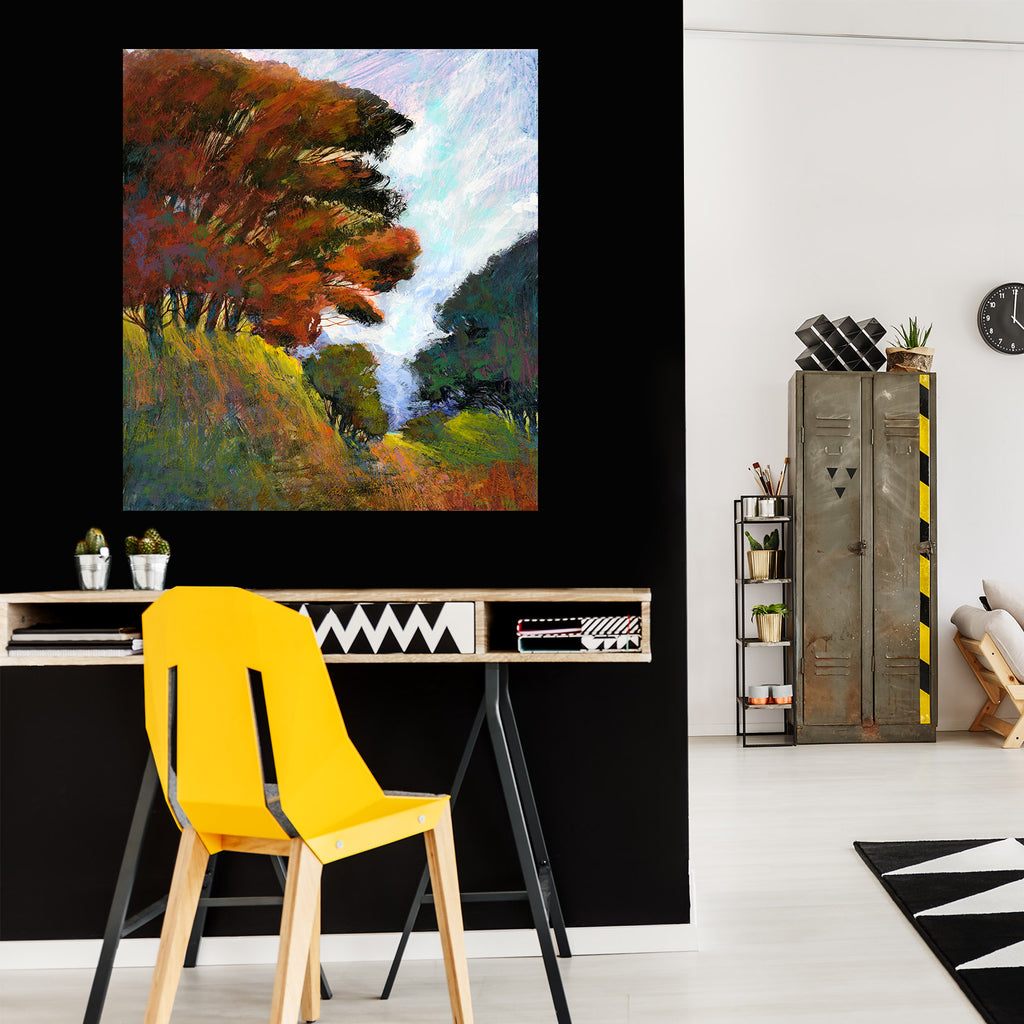 Make sure the wall surface is flat, clean and smooth. A clean and dry wall will help the adhesive from your wall mural to keep its stickiness. Put all panels on the ground, check the order. Measure and write down the dimensions of each panel. Mark vertical guidelines according to the panel's dimensions. Leave 2-3cm overlap between panels.