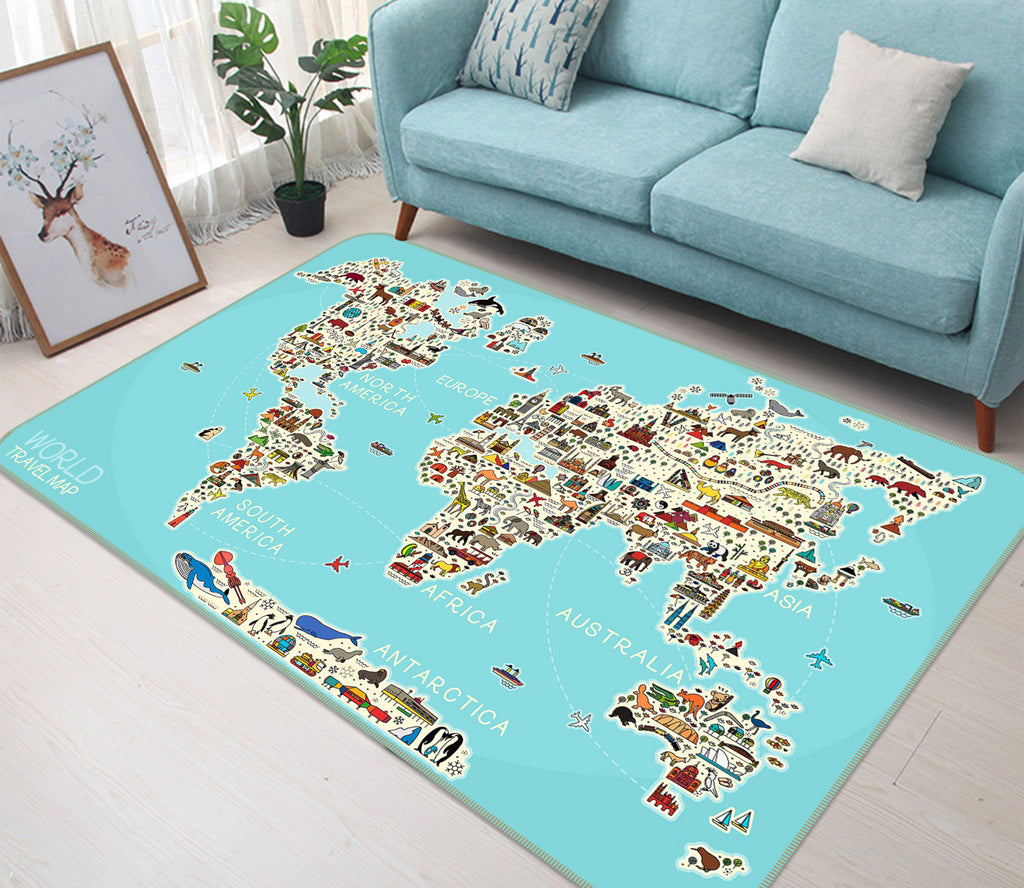 3D Animal Painting 313 World Map Non Slip Rug Mat Dai