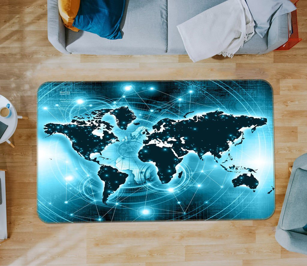 3D Black Stones 265 World Map Non Slip Rug Mat Dai