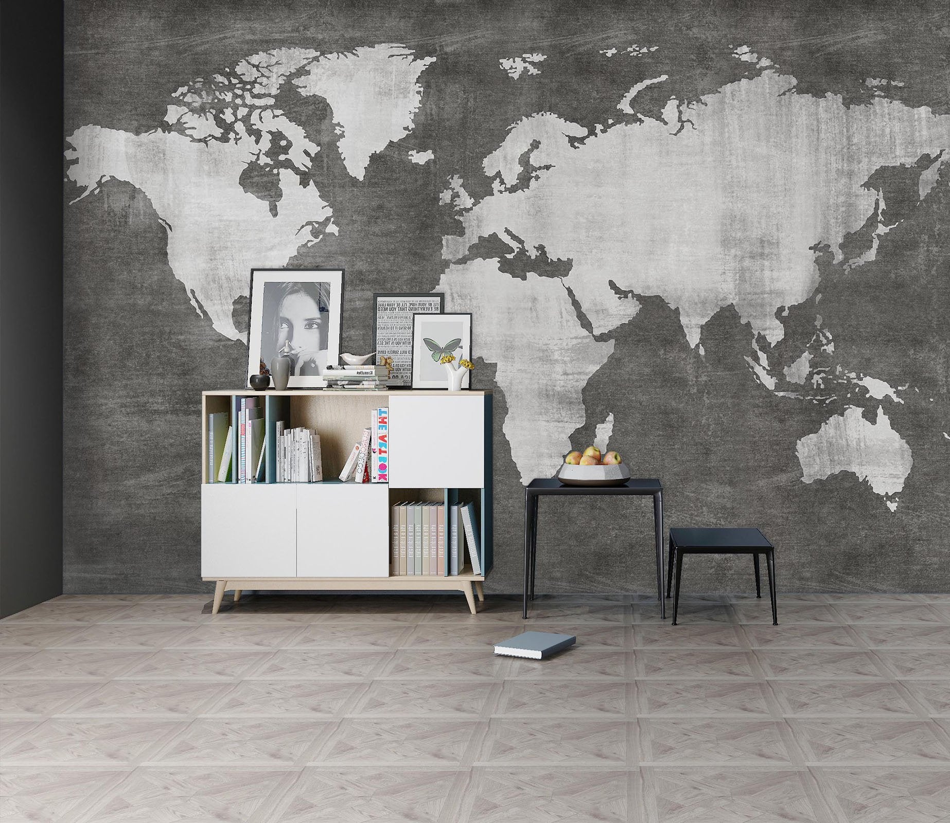 3D Black World Map 113 Wall Murals