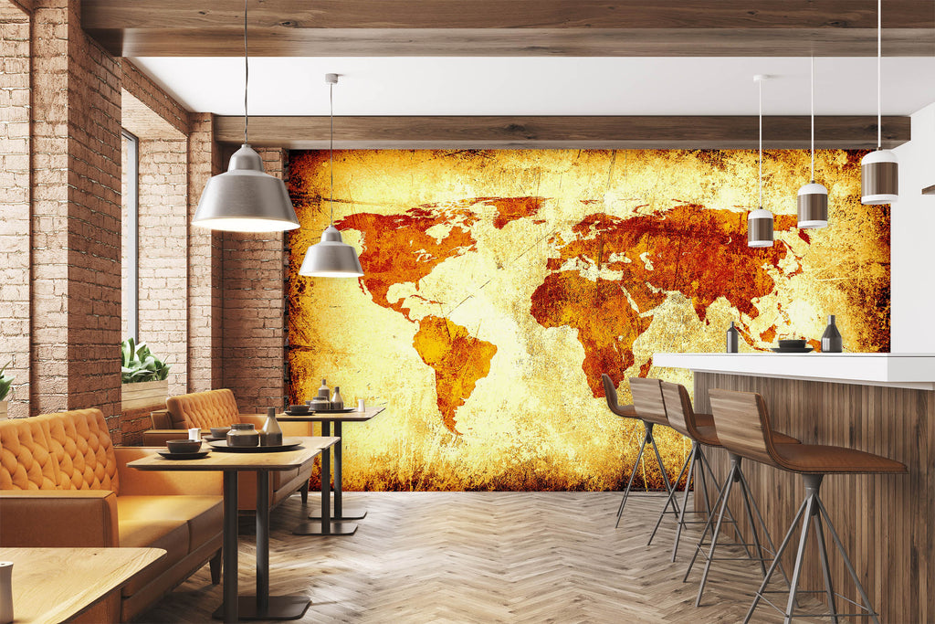 3D Gold Pattern 2040 World Map Wall Murals Dai