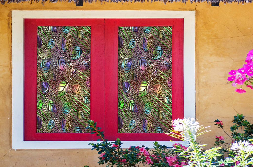 3D Glass Color Leaves 183 Window Film Print Sticker Cling Stained Glass UV Block Zoe