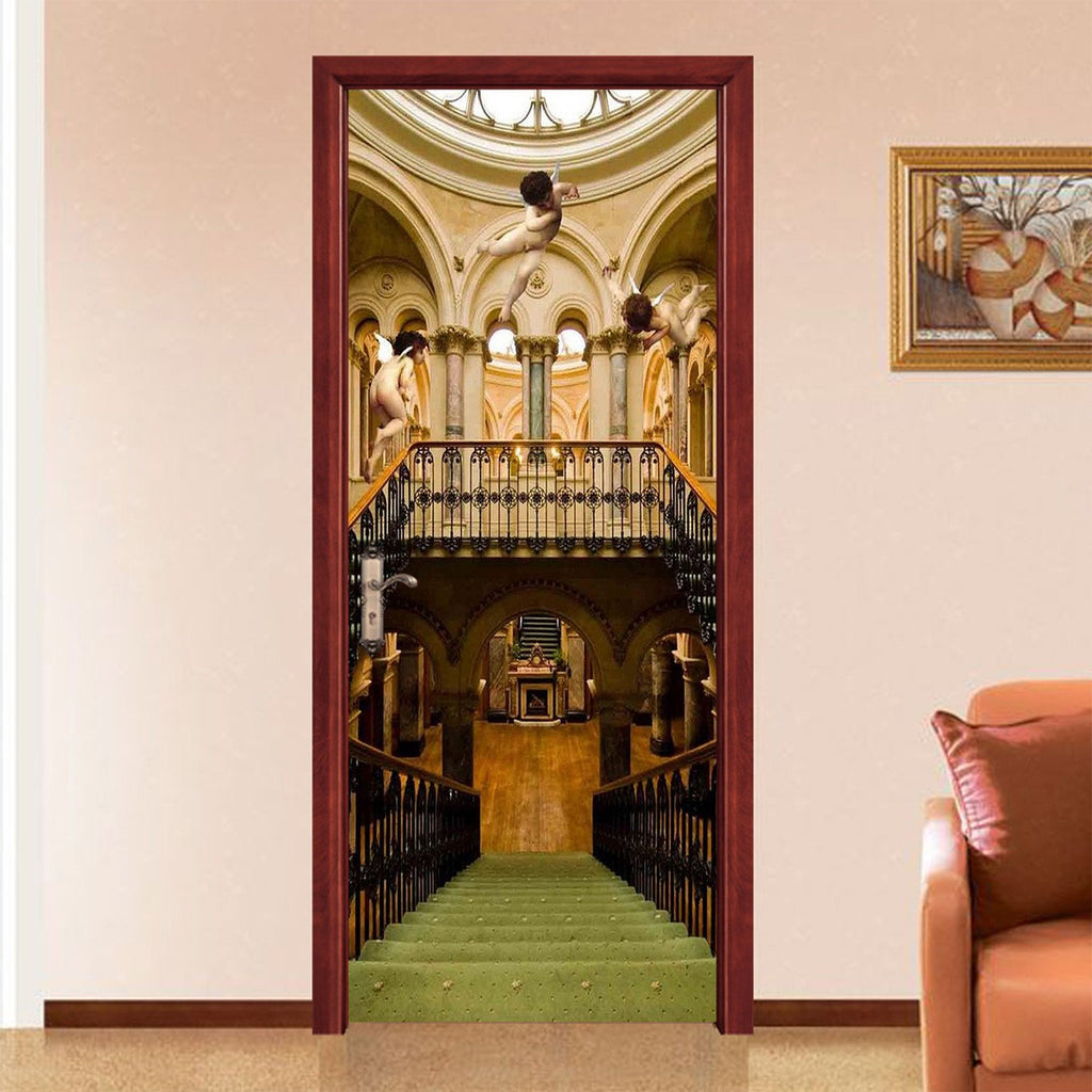 3D Palace Stairs Angels 96 Door Mural