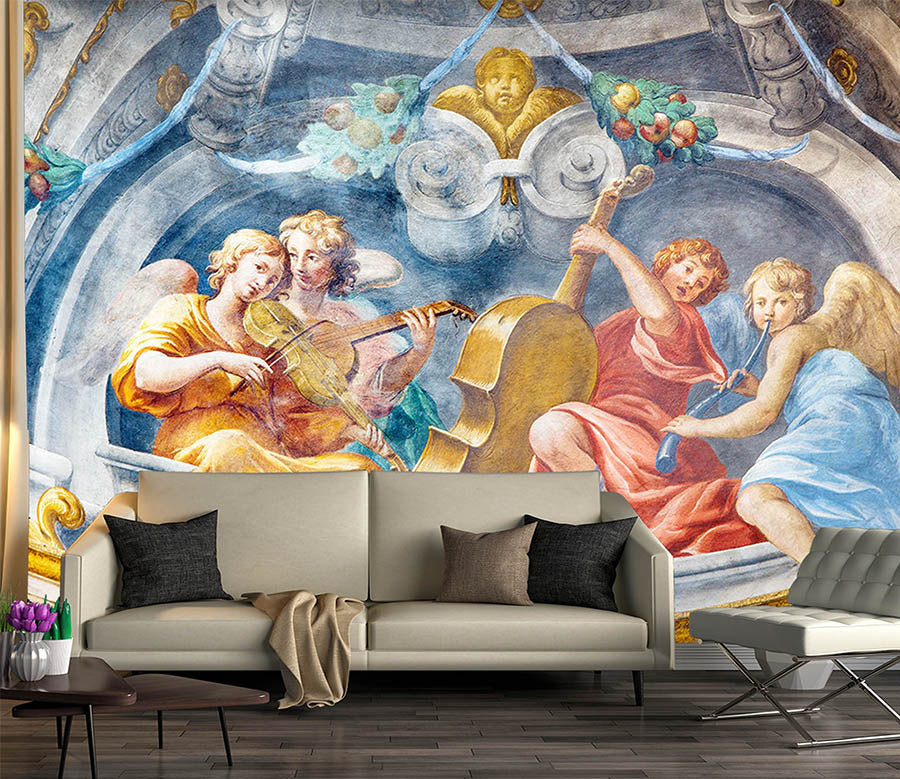 Make sure the wall surface is flat, clean and smooth. A clean and dry wall will help the adhesive from your wall mural to keep its stickiness. Put all panels on the ground, check the order. Measure and write down the dimensions of each panel. Mark vertical guidelines according to the panel's dimensions. Leave 2-3cm overlap between panels.