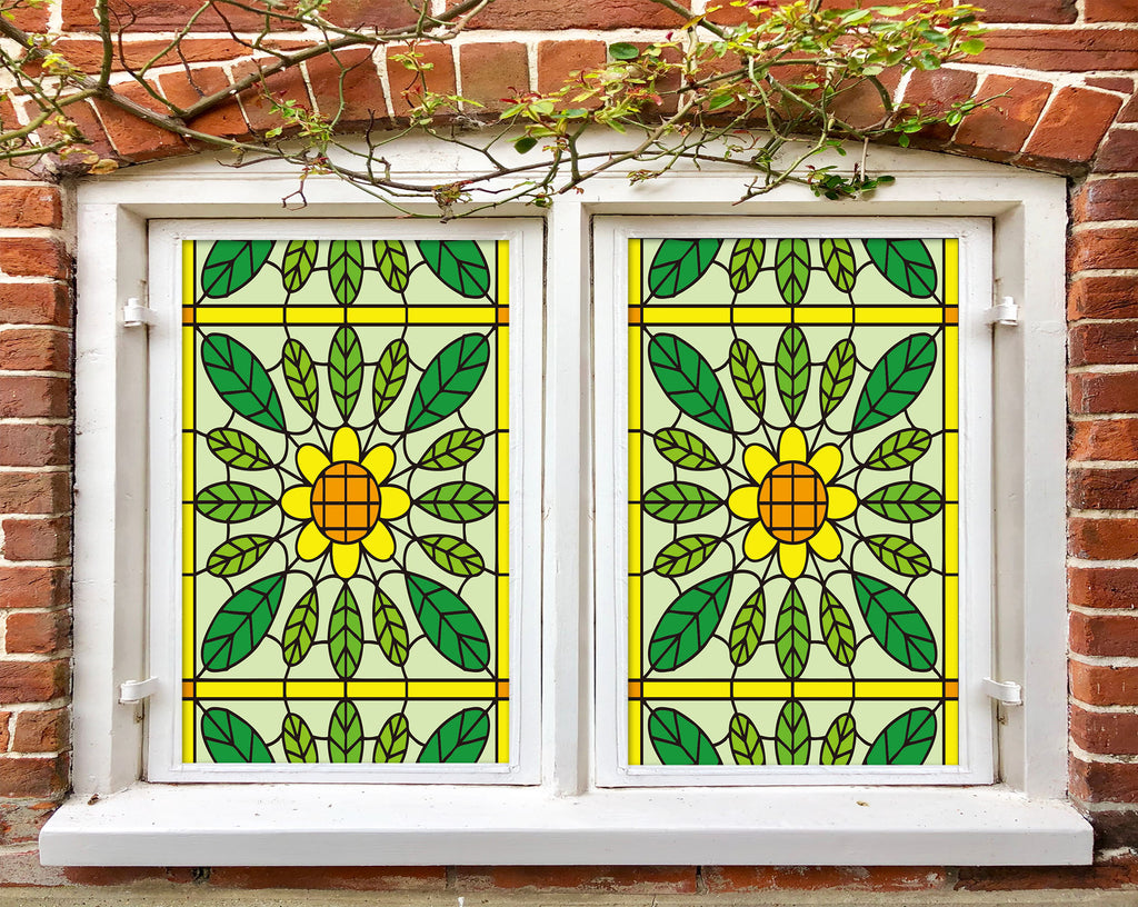 3D Sunflower Pattern 185 Window Film Print Sticker Cling Stained Glass UV Block