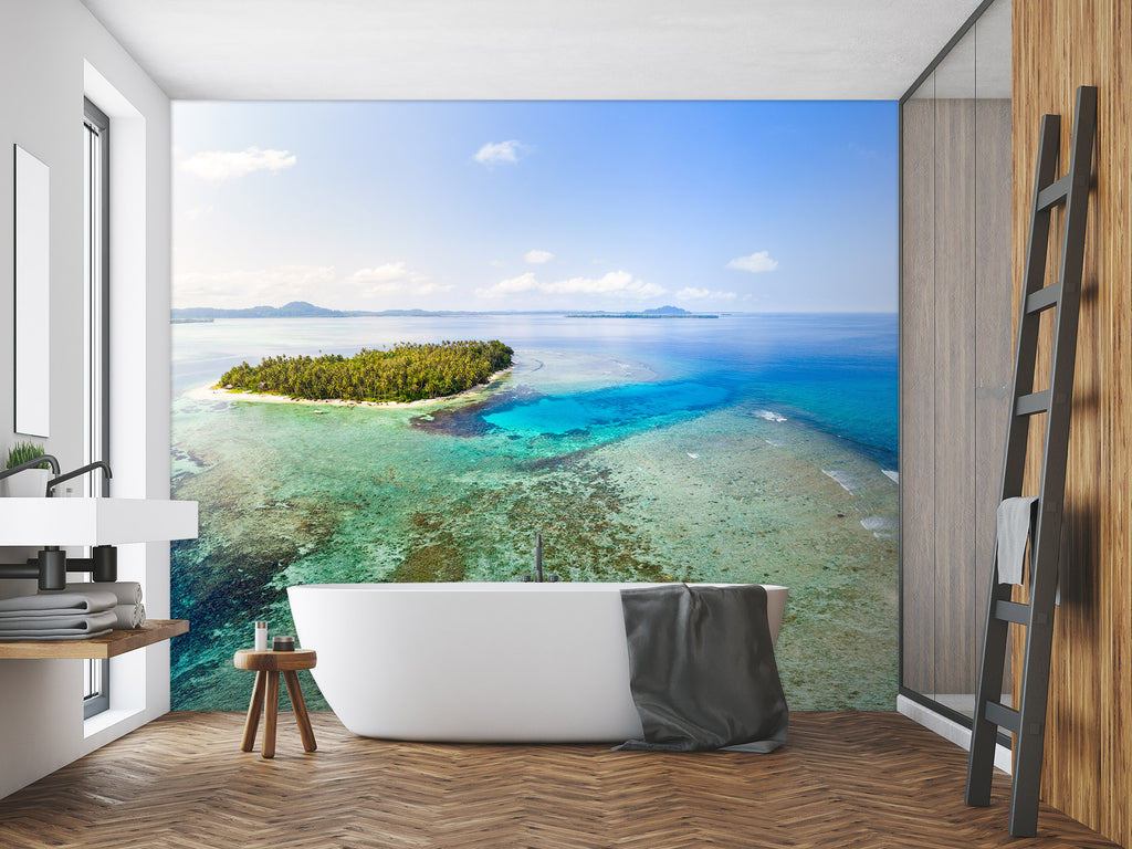 Apply the 1st panel. Leave 1-2cm overage on top. Bottom and left hand side. Smooth wrinkles and remove bubbles. Align panel 2 to panel 1. Simply match the pattern of the mural (with 2-3cm overlap)Peel away the excess piece.
