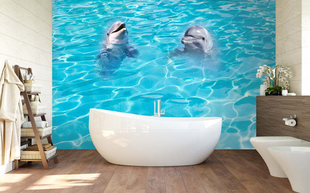 3D Dolphin Water Pattern Blue 093 Wall Murals Zoe