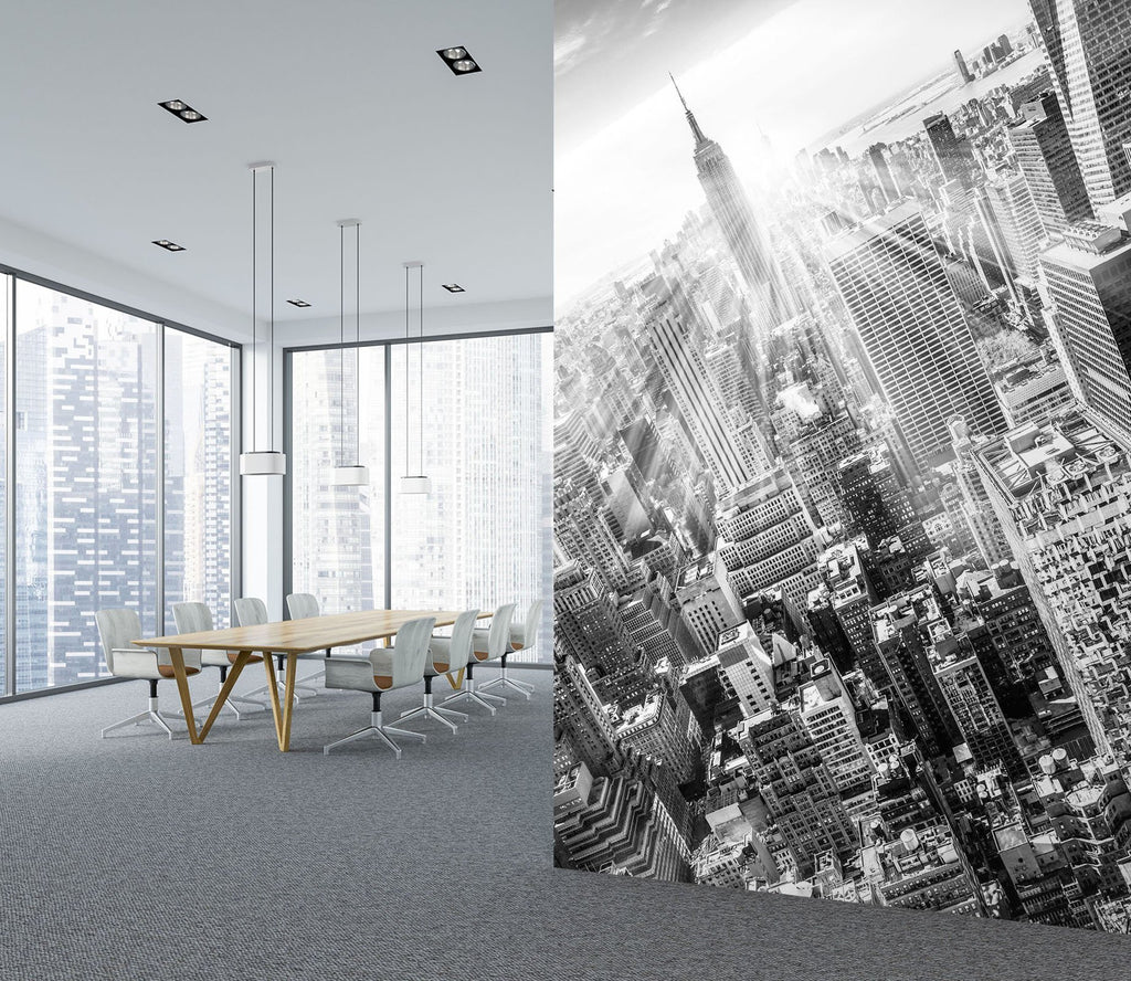 3D Black and white city buildings with sunshine 17 Wall Mural