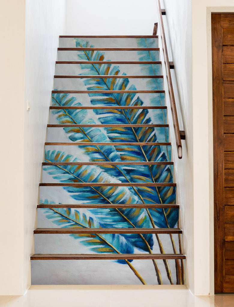 3D Blue And Yellow Memory Leaves 608 Stair Risers Romy