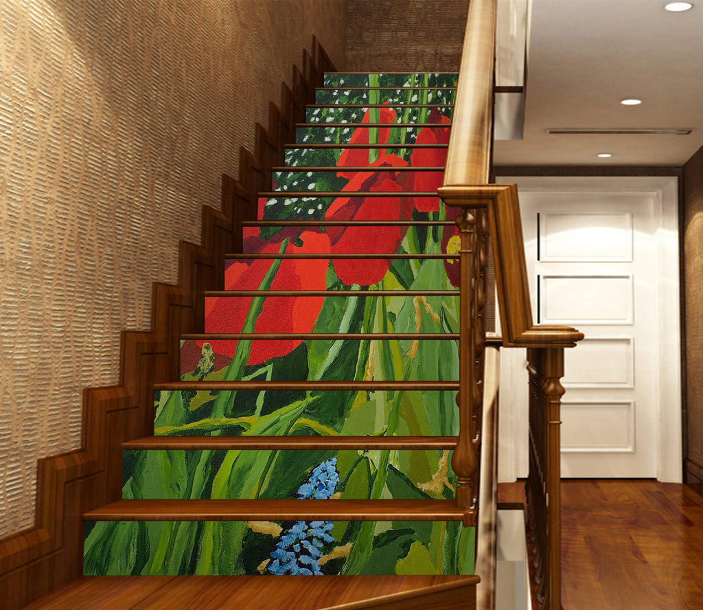 3D Red Flowers 89200 Allan P. Friedlander Stair Risers Sinsin