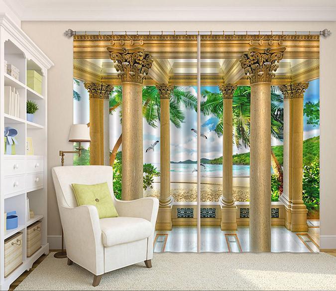 3D Beach Pillar Pavilion 40 Curtains Drapes