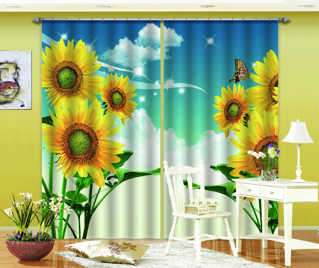 3D Blue Sky Sunflowers 824 Curtains Drapes