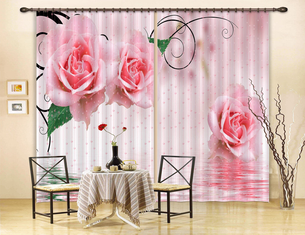 3D Bead Curtain And Roses 144 Curtains Drapes