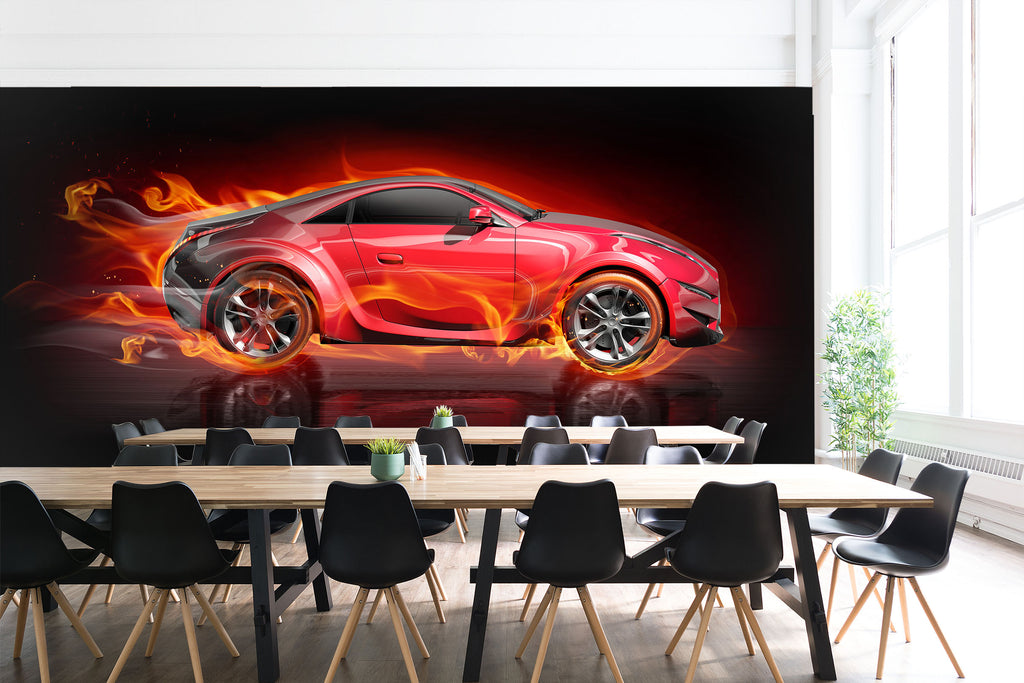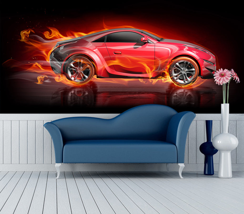 3D Fire Red Car 298 Vehicle Wall Murals Zoe