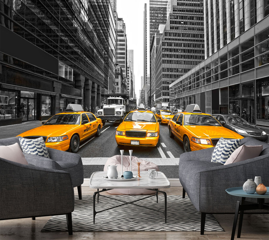 3D Yellow Taxi 307 Vehicle Wall Murals Zoe