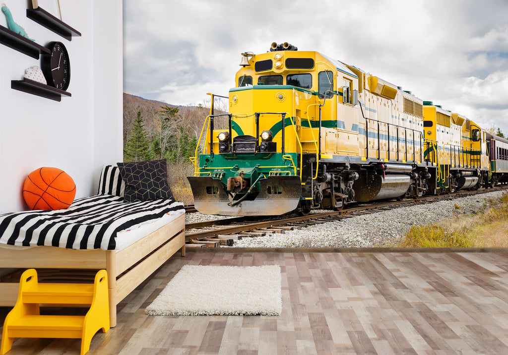 3D Yellow Train Stone 253 Vehicle Wall Murals Zoe
