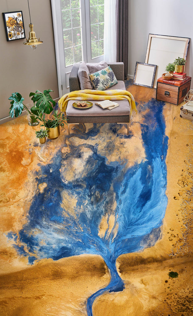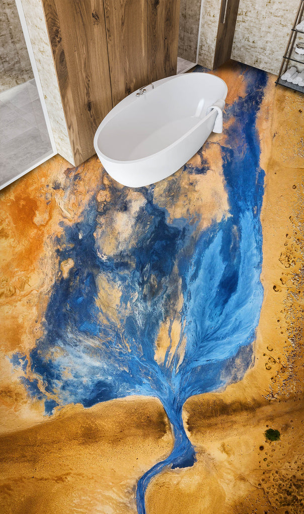 3D Abstract Blue River 600 Floor Mural Romy