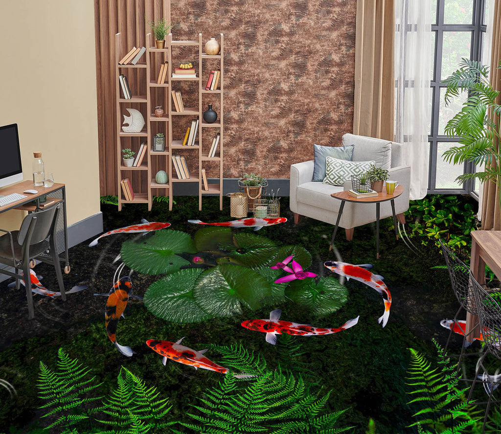3D Aquatic Plants And Koi 245 Floor Mural Romy