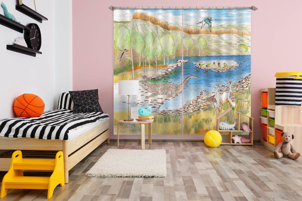 3D Blue Lake 056 Michael Sewell Curtain Curtains Drapes Dai