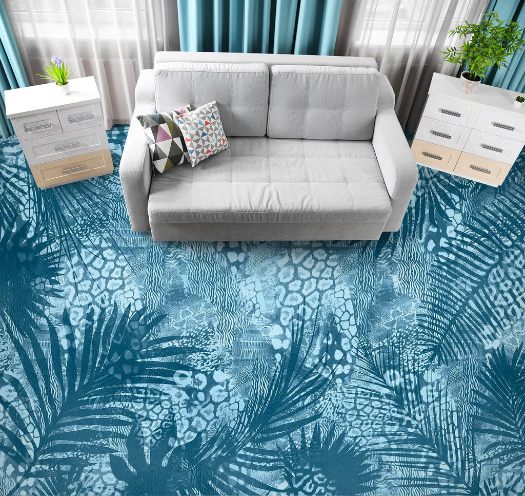 3D Blue Leaves Pattern 102118 Andrea Haase Floor Mural Wallpaper Murals Self-Adhesive Removable Print Epoxy