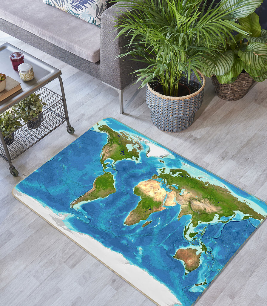 3D Blue Ocean 307 World Map Non Slip Rug Mat Dai