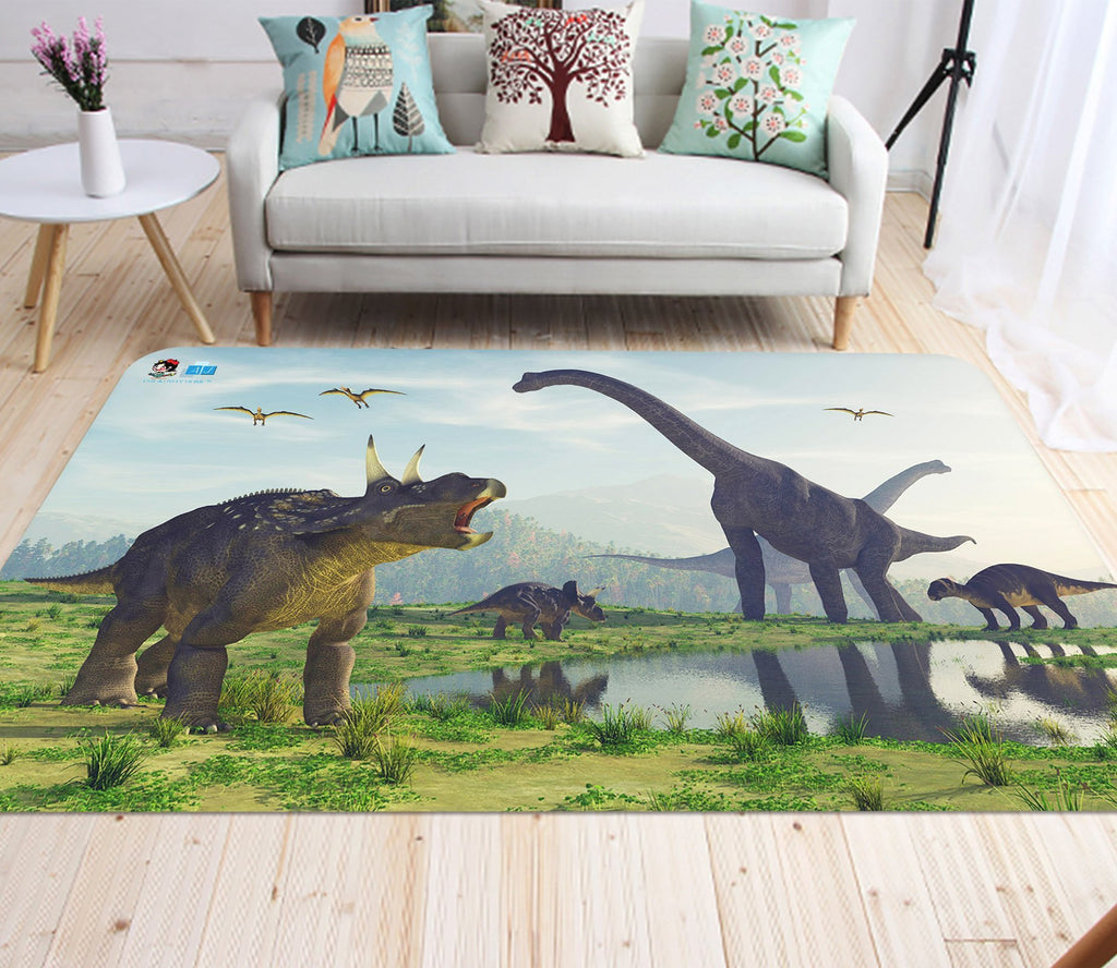 3D Brontosaurus Horned Dragon 79 Non Slip Rug Mat