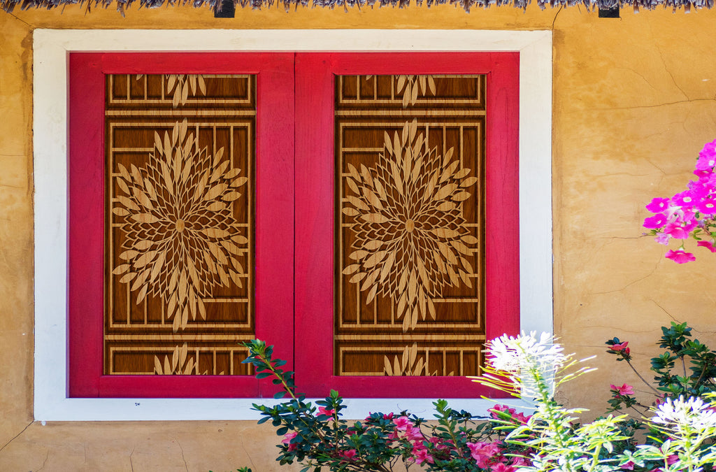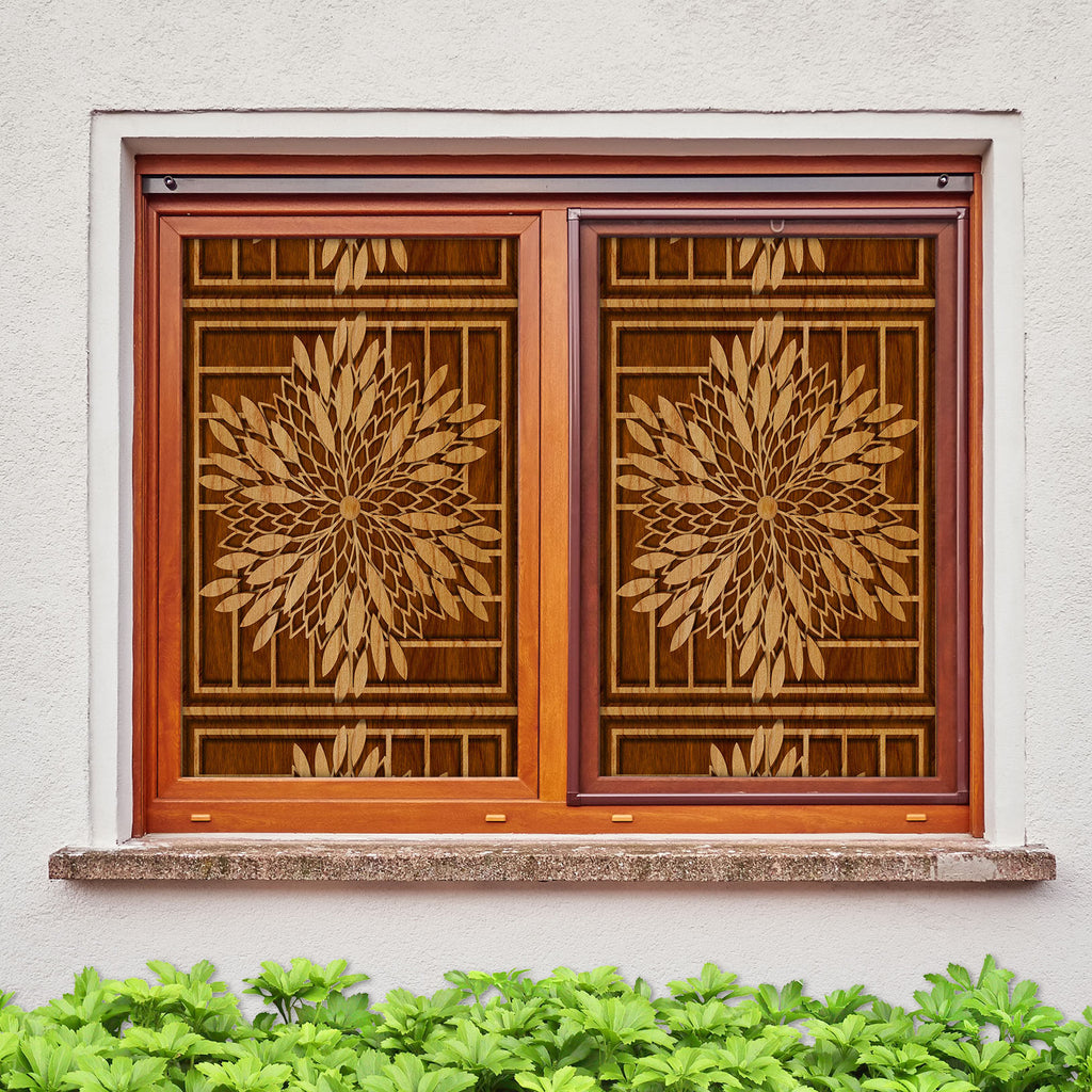 3D Brown Peony 150 Window Film Print Sticker Cling Stained Glass UV Block Zoe