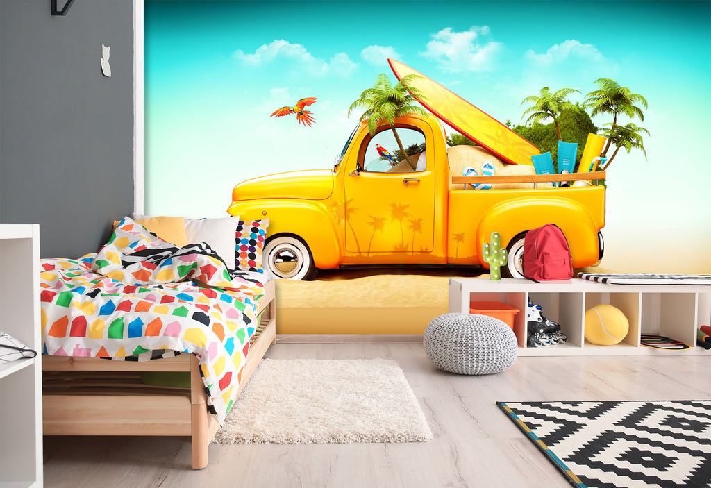 3D Cartoon Car Beach 234 Vehicle Wall Murals Zoe