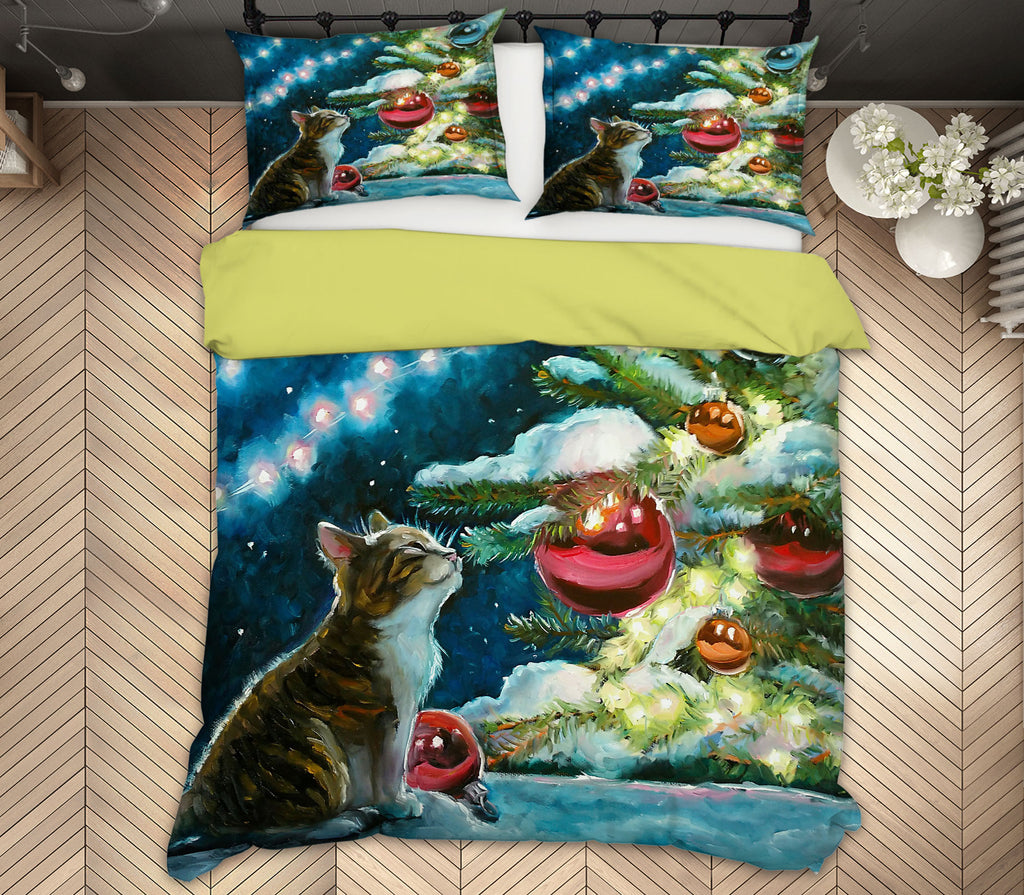 3D Cat Red Ball Tree 52178 Christmas Quilt Duvet Cover Xmas Bed Pillowcases Sinsin