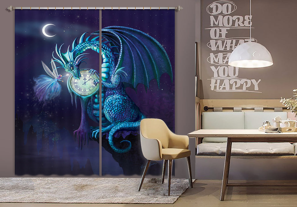 3D Dragon Clock 124 Rose Catherine Khan Curtain Curtains Drapes Dai