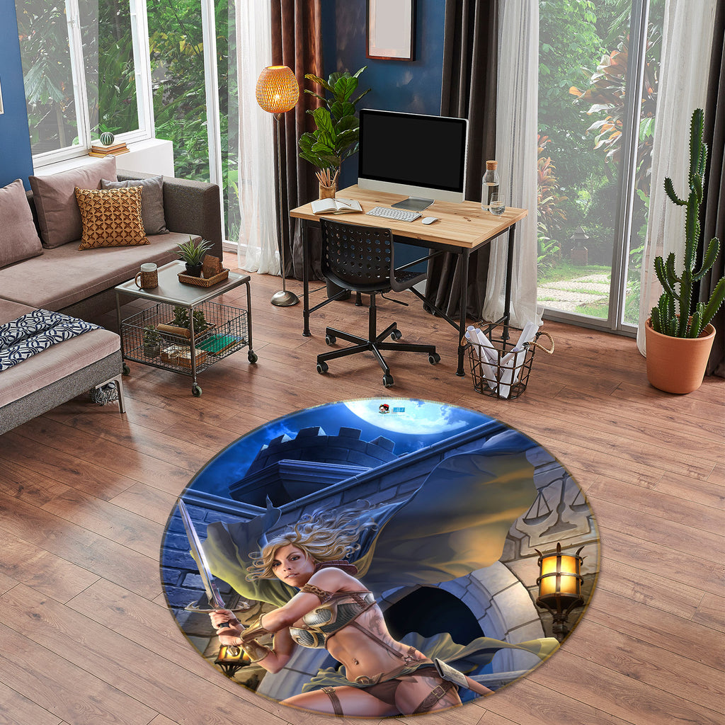 3D Female Warrior 4197 Tom Wood Rug Round Non Slip Rug Mat Sinsin