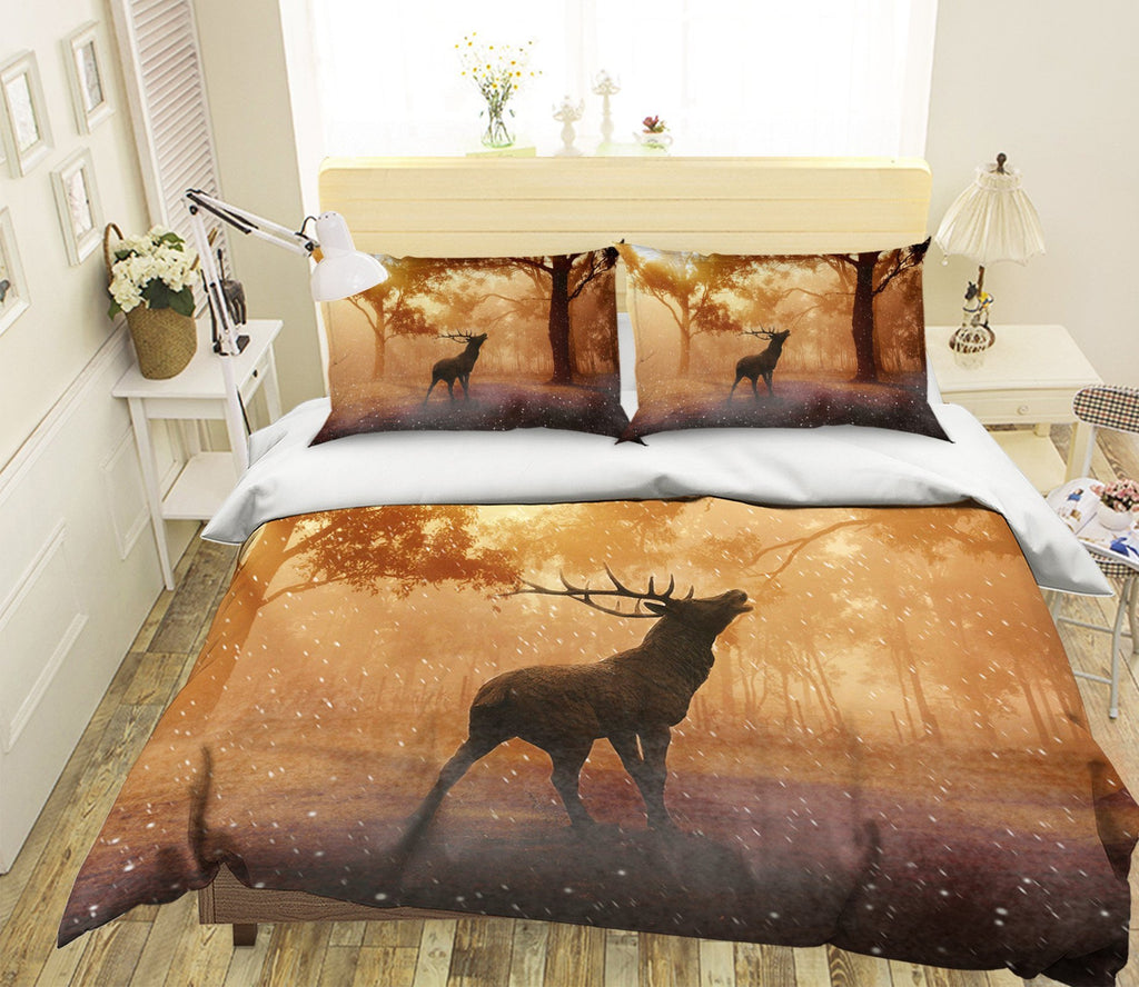 3D Forest Elk 1954 Bed Pillowcases Quilt