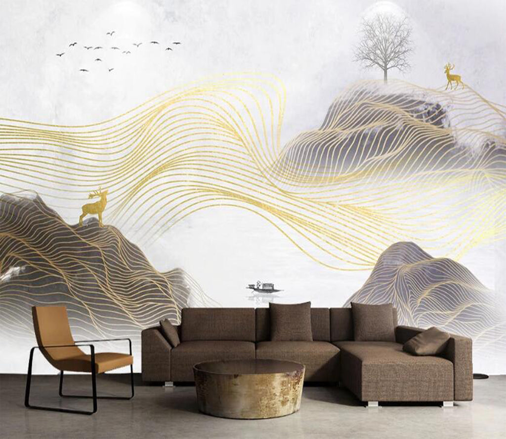 3D Golden Delicate Lines 2082 Wall Murals Romy
