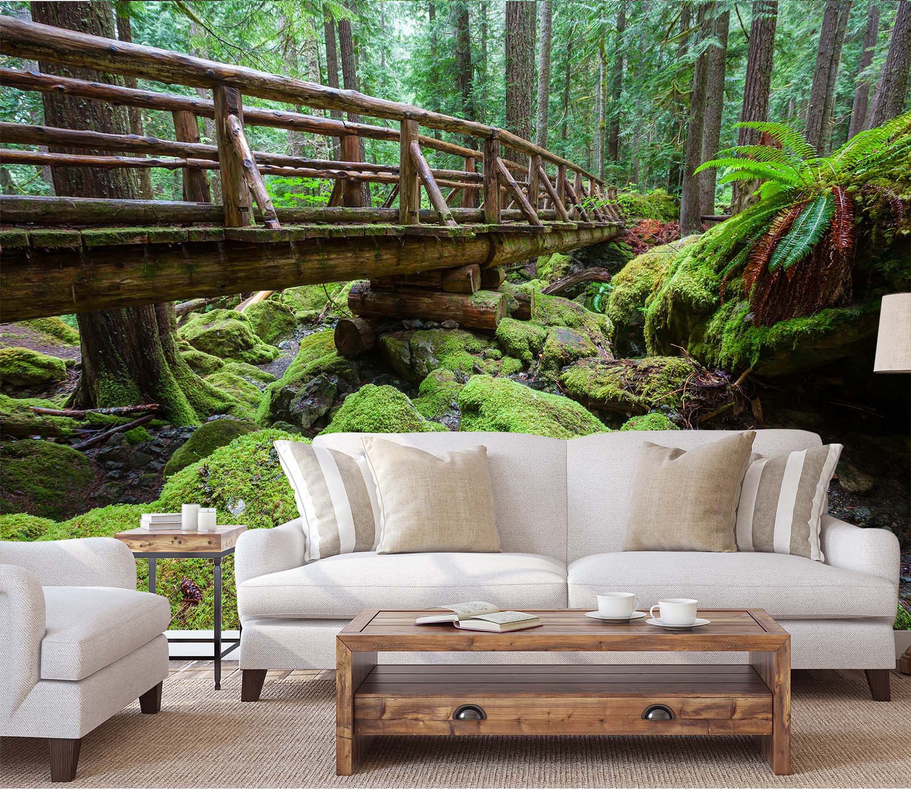 3D Green Wooden Bridge Stone 023 Wall Murals Zoe