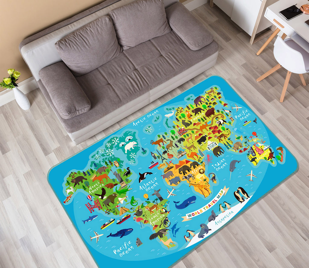 3D Island Forest 314 World Map Non Slip Rug Mat Dai