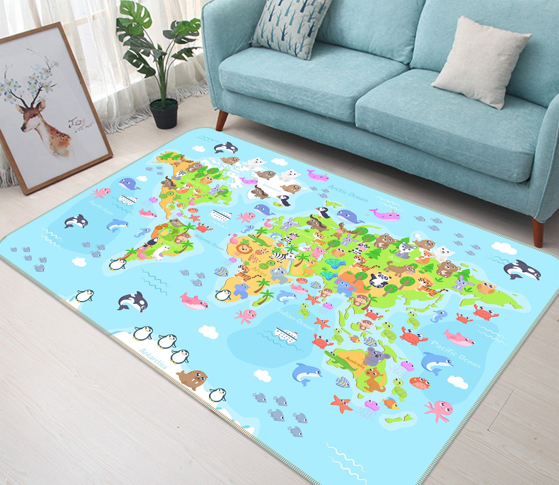 3D Island Life 299 World Map Non Slip Rug Mat Dai
