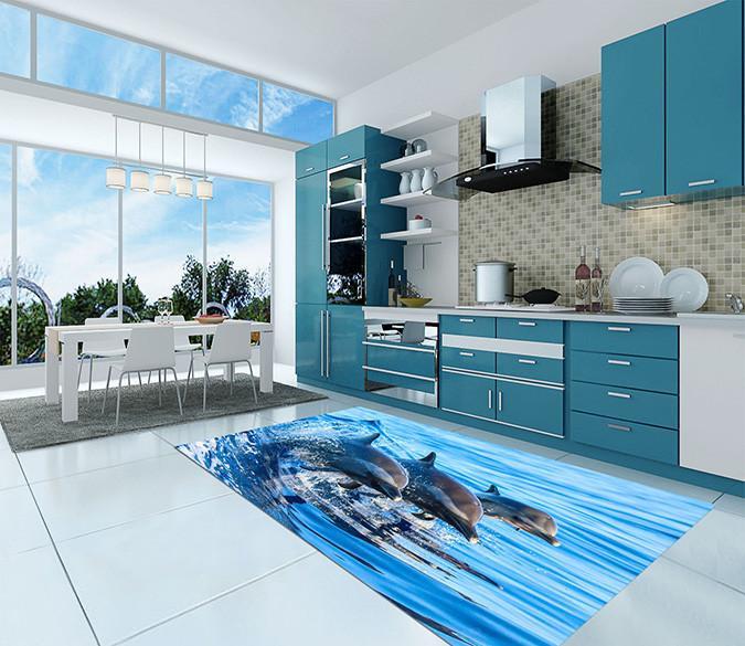 3D Jumping Dolphins 47 Kitchen Mat Floor Mural