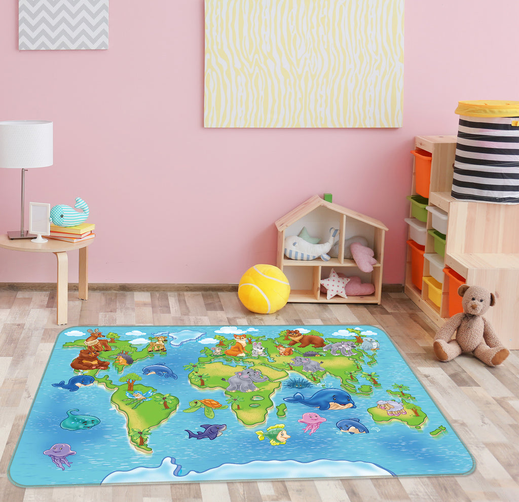 3D Living Land 231 World Map Non Slip Rug Mat